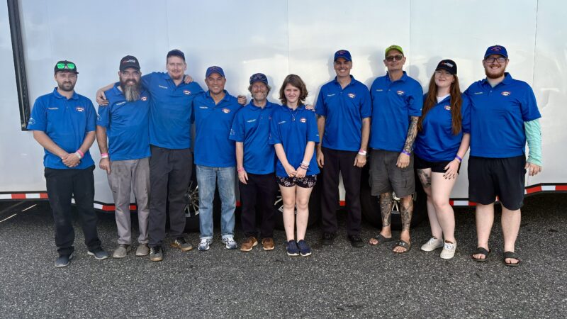 On Saturday the fans began pouring-in. More Racing For Kids swag was handed out and more signed Helping Hands were added to the race car. One particular young fan named Carter took a liking to us and followed us everywhere. His infectious enthusiasm put a smile on everyone’s faces. Saturday Qualifying. We installed a new set of tires and the car felt good. The tires had good grip, but the motor had no power. The car would not accelerate like it normally does. Note we typically up-shift at 7000 rpm. Instead of up-shifting at the spots on the track where I would normally reach 7000 rpm, I found myself going beyond those spots and having to wait a second or two for the motor to “slowly” wind itself up to our 7000 rpm shift point.